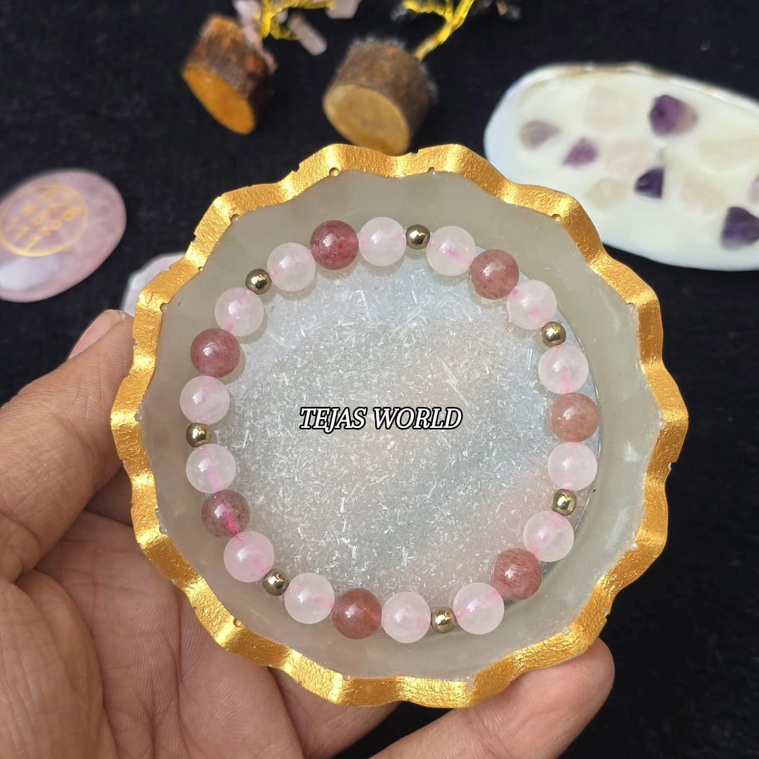 💗 Rose Quartz & Strawberry Quartz Bracelet